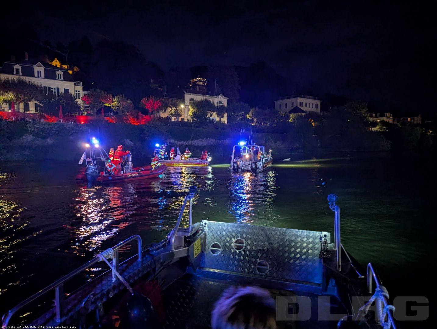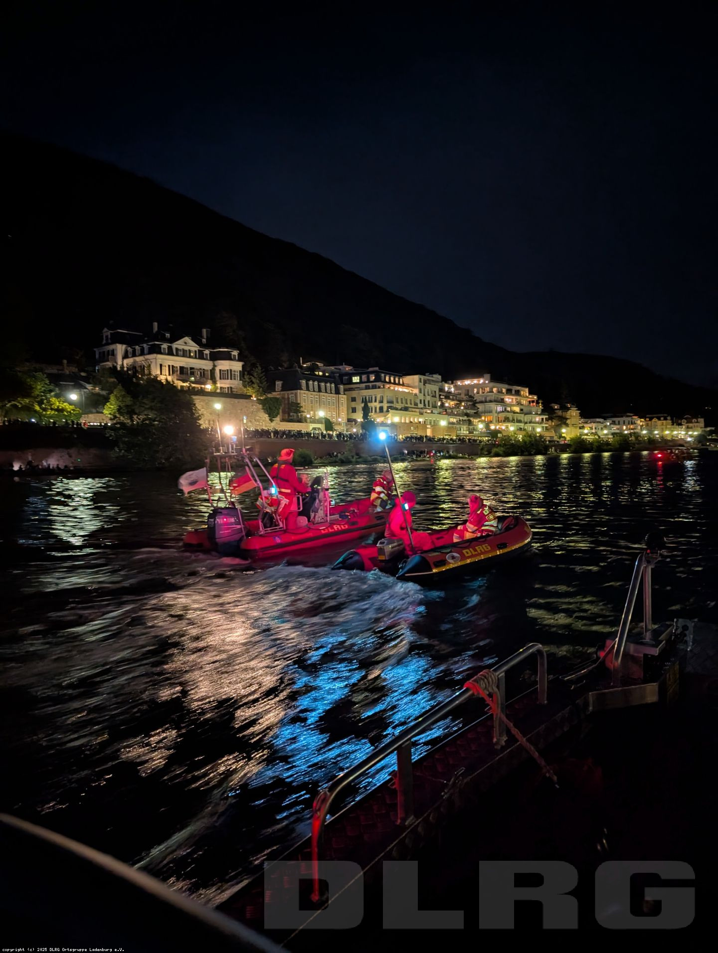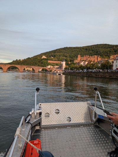 Mit unserem Boot waren wir zusammen mit denen der DLRG Heidelberg, der Wasserschutzpolizei und der Feuerwehr Heidelberg auf dem Neckar präsent.